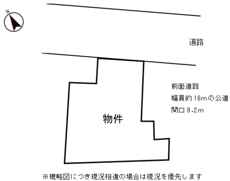 接道状況 北東側 幅員約16mの公道 間口9.2m