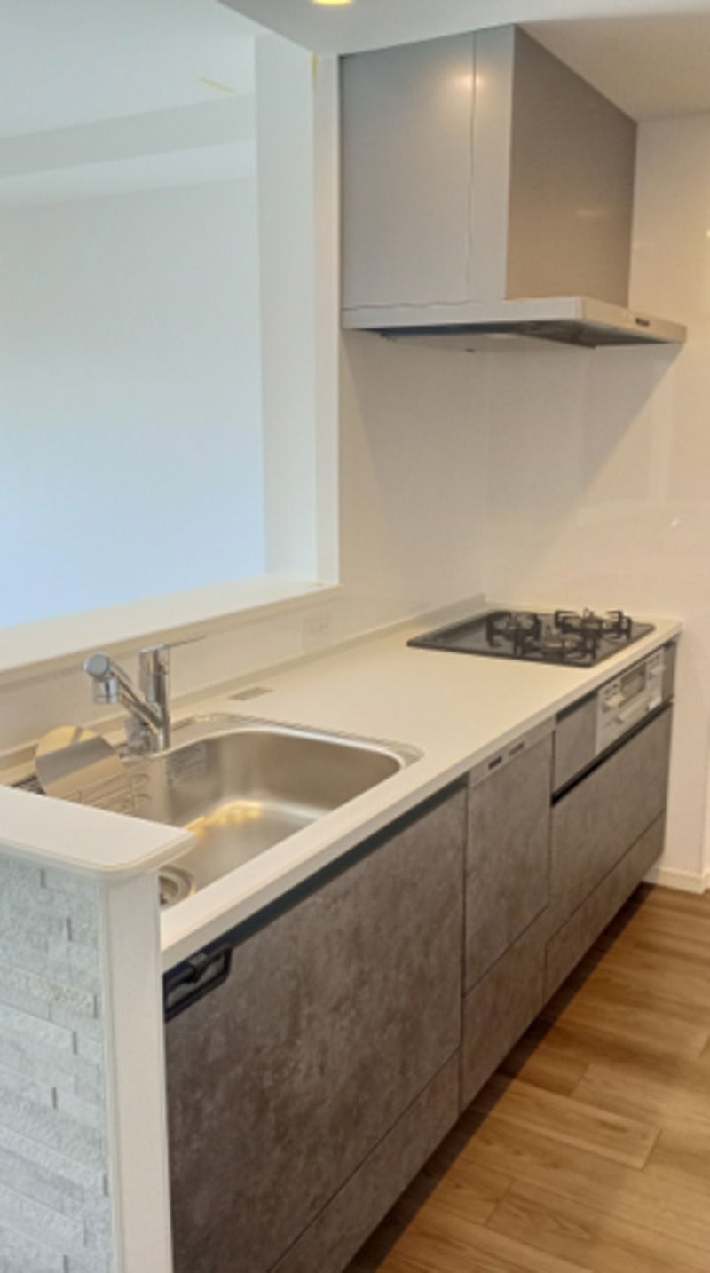 キッチン カウンターキッチン、システムキッチン、食器洗浄乾燥機、3口コンロ、グリル
